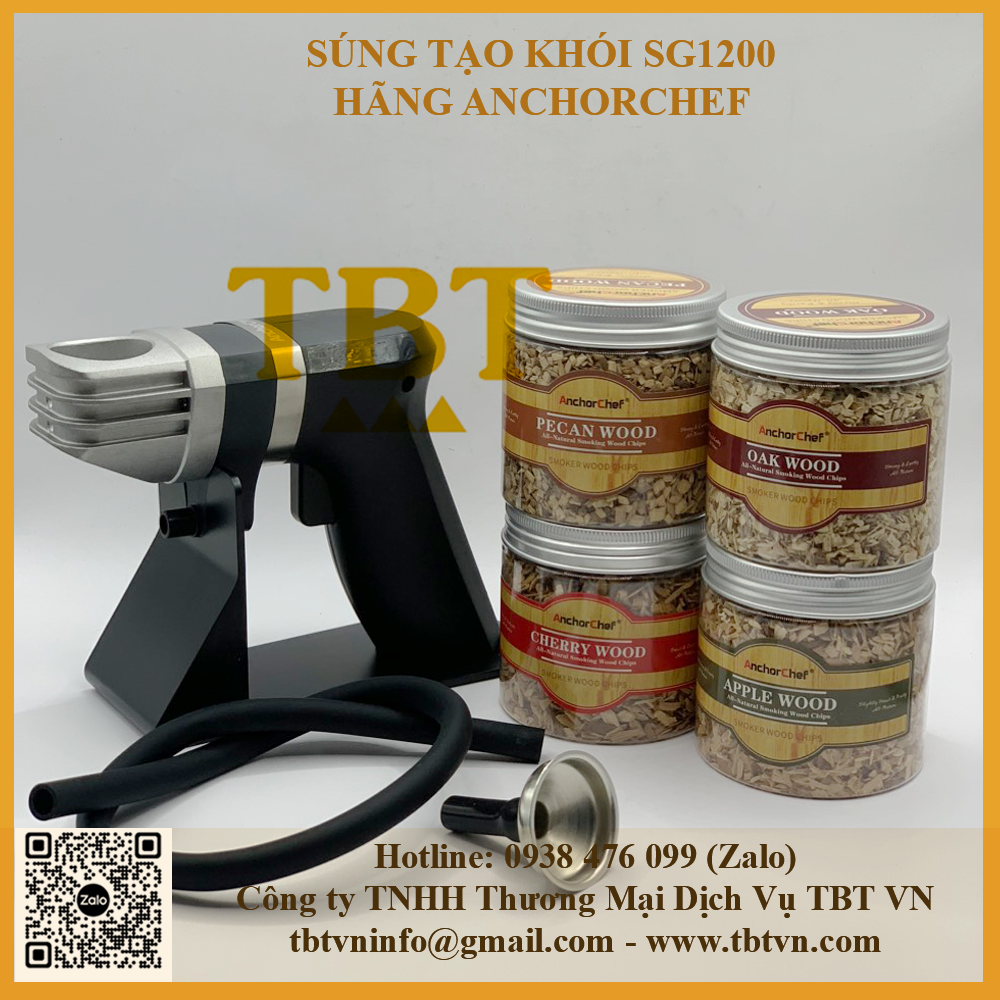 - Được tặng kèm gỗ đốt tạo mùi khi mua súng tạo khói Anchor Chef.